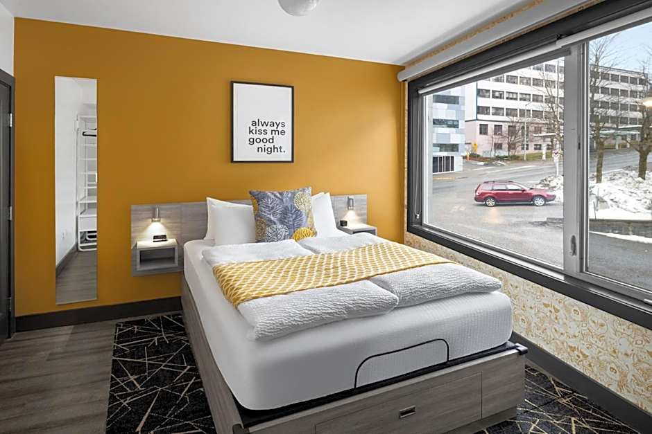 This spacious suite consists of 1 living room, 1 separate bedroom and 1 bathroom with a bath and free toiletries. Meals can be prepared in the well-fitted kitchenette, which comes with a stovetop, a refrigerator, kitchenware and a microwave. The suite provides a tea and coffee maker, a seating area, a dining area, a flat-screen TV with streaming services, as well as city views. The unit offers 2 beds.